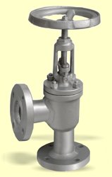 | Válvula Angular, volante e haste ascendente, corpo em Aço Inoxidável Laminado AISI 316 |